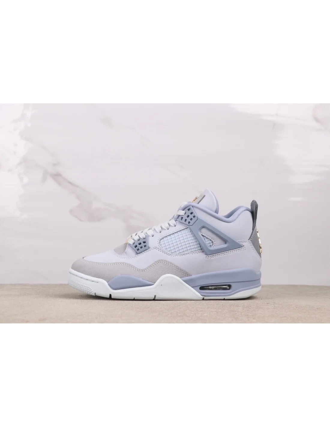 The Air Jordan 4 “UNC” PE Blue 2025 reimagines the classic silhouette with a refined Tar Heels-inspired palette. Dressed in soft gradients of Carolina blue, powder grey, and ice mint, the upper blends suede and nubuck with mesh paneling for breathable structure. Gold PE detailing on the heel tab adds exclusivity, while the signature visible Air unit ensures all-day comfort. This pair delivers court-ready DNA with a lifestyle edge rooted in UNC heritage.