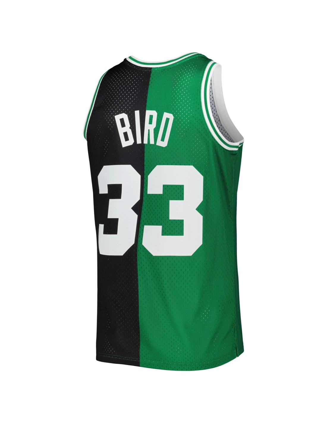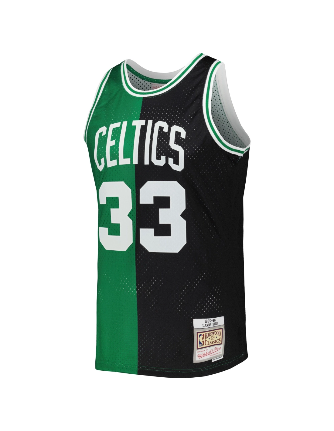 Mens Boston Celtics Larry Bird Black/Kelly Green Hardwood Classics 1985/86 Split Swingman Jersey