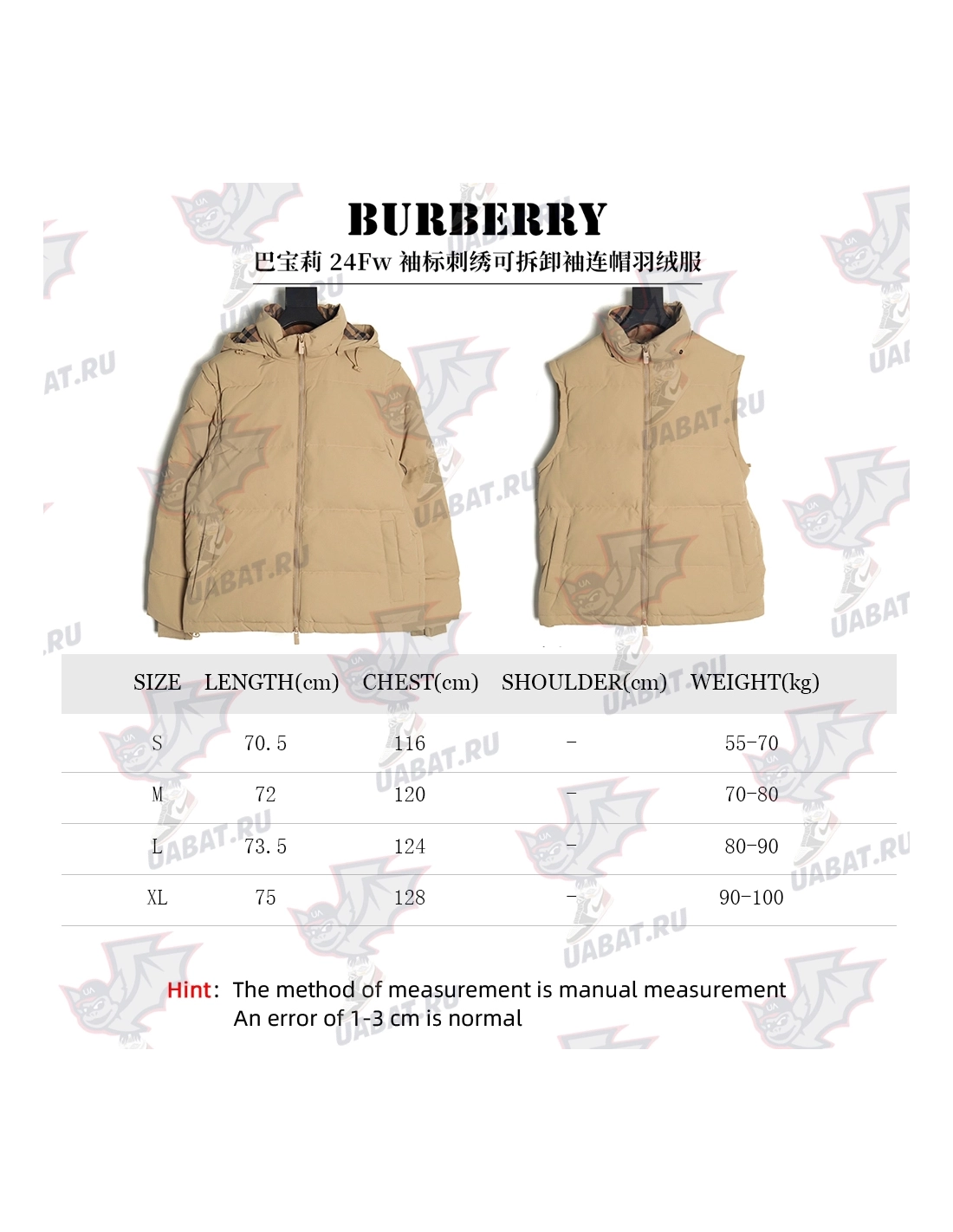 Burberry armband embroidery detachable hood down jacket