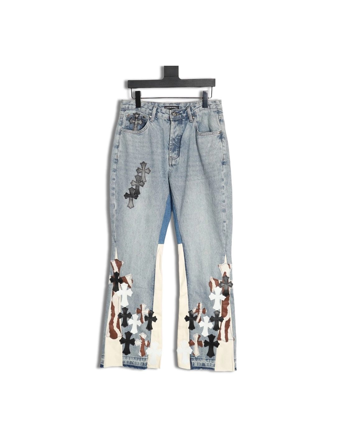Chrome Hearts Flared Destroyed Leather Jeans