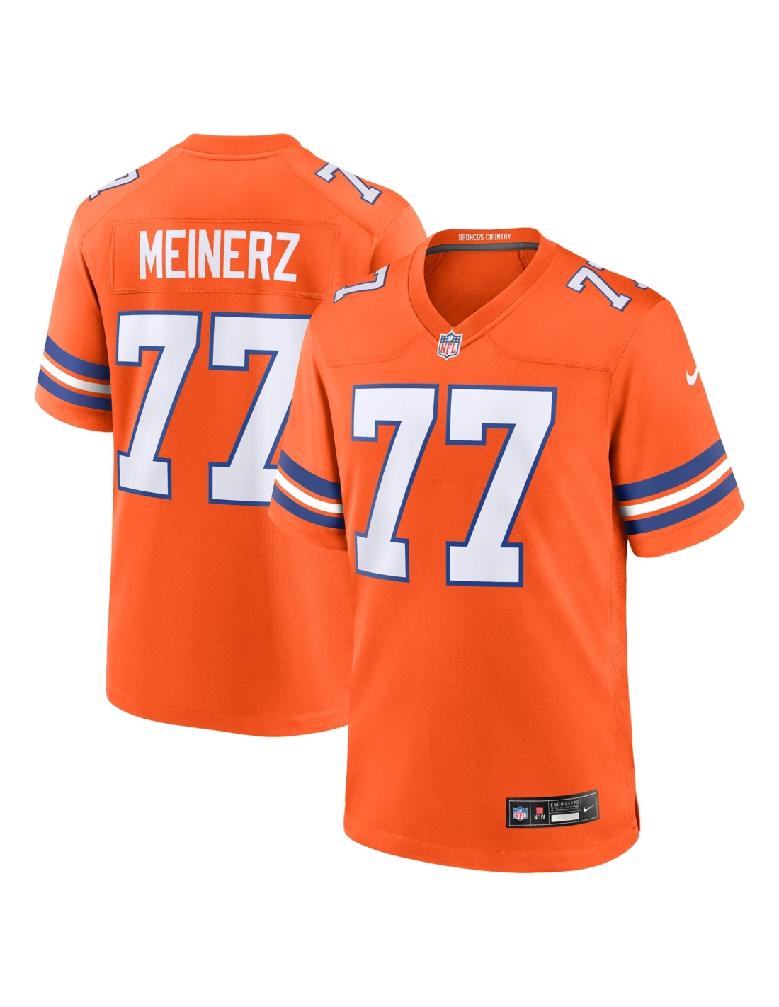 Mens Denver Broncos Quinn Meinerz Orange Mile High Collection 1977 Throwback Player Game Jersey