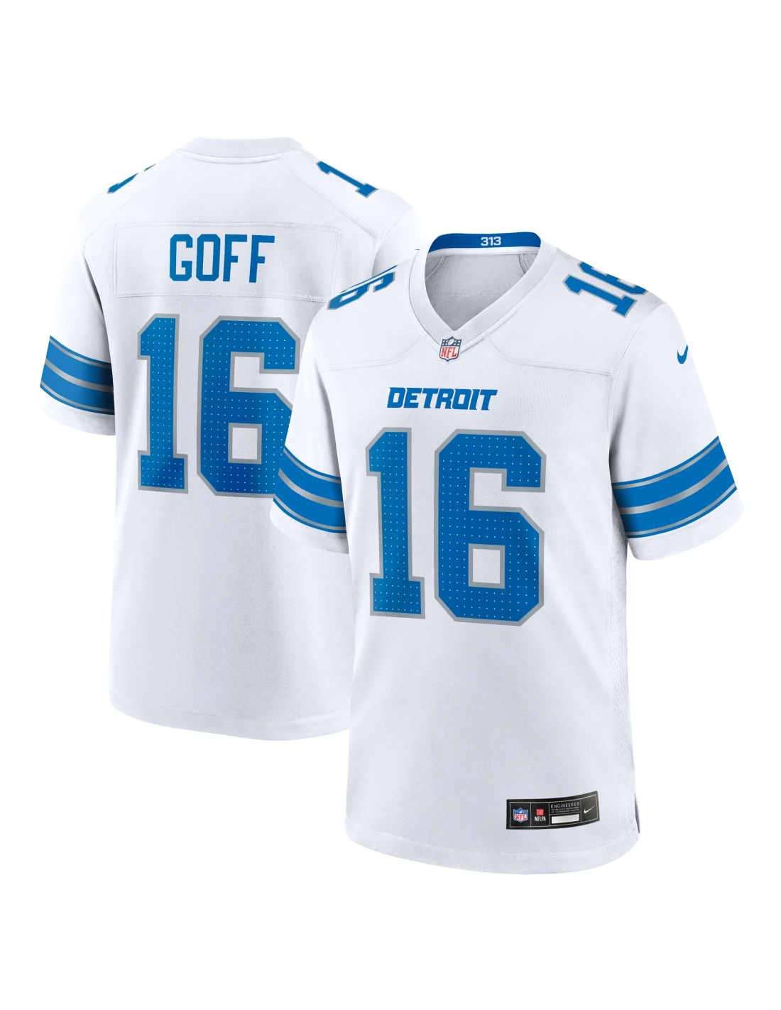 Mens Detroit Lions Jared Goff White Game Jersey