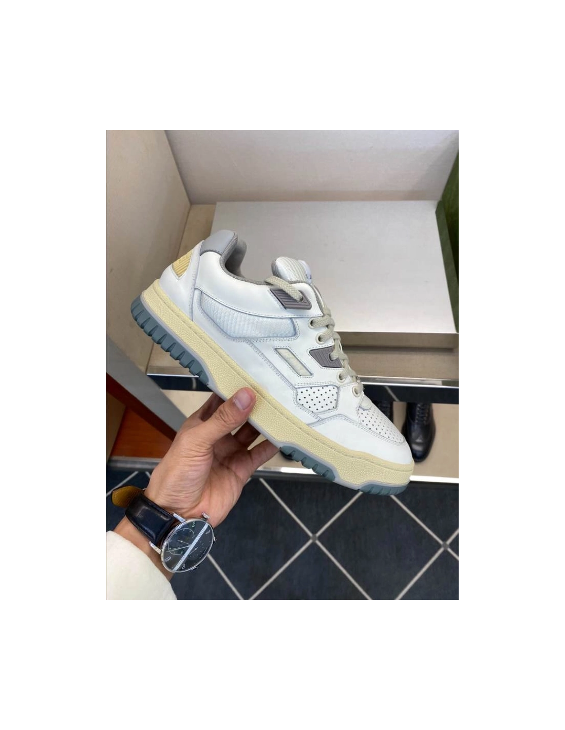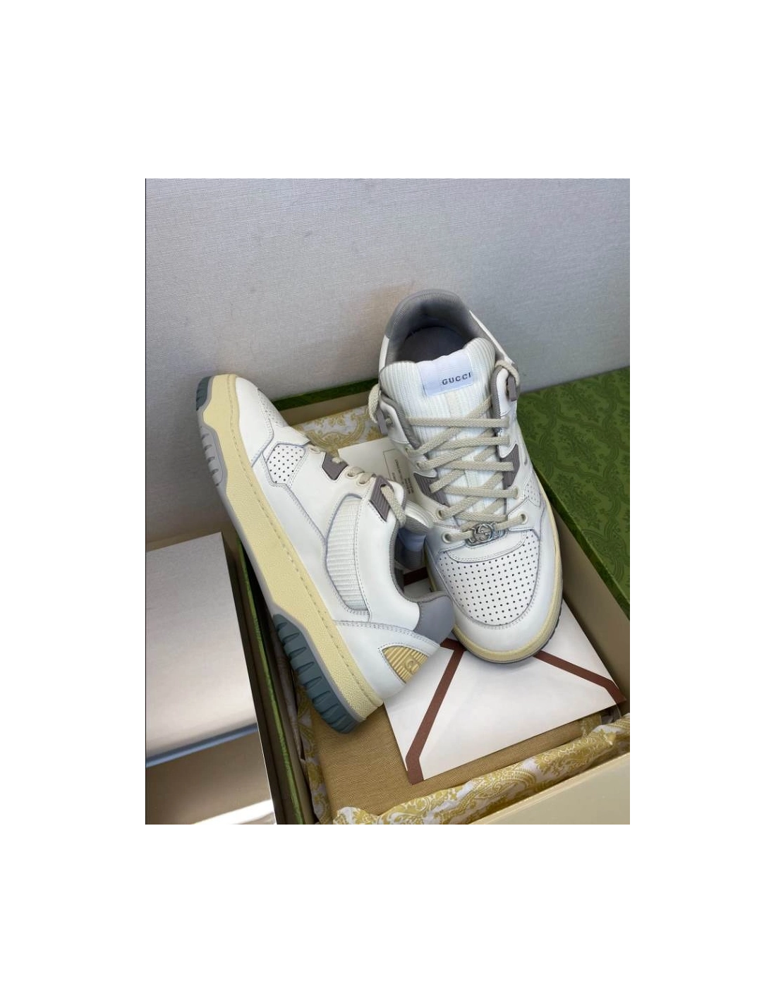 Gucci White Grey Yellow Distressed Effect Sneakers - GCC203