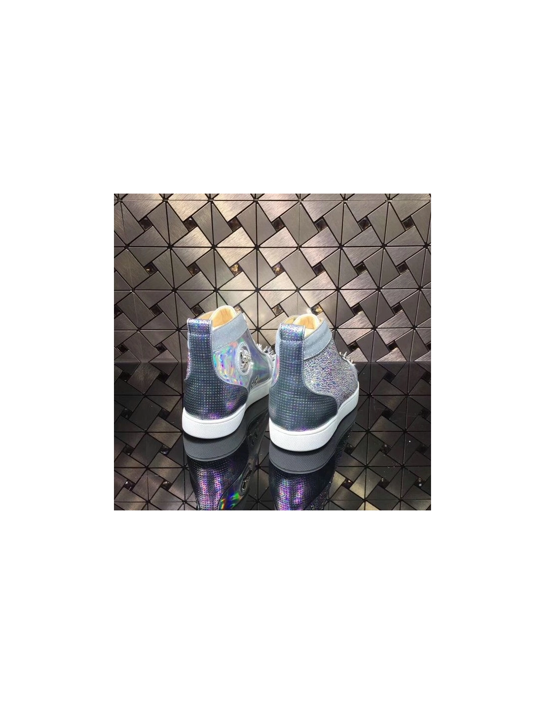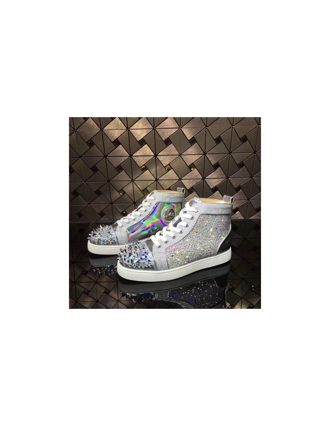 Christian Louboutin Louis Strass Pik Pik Version High-top Sneakers Iridescence Leather Multi