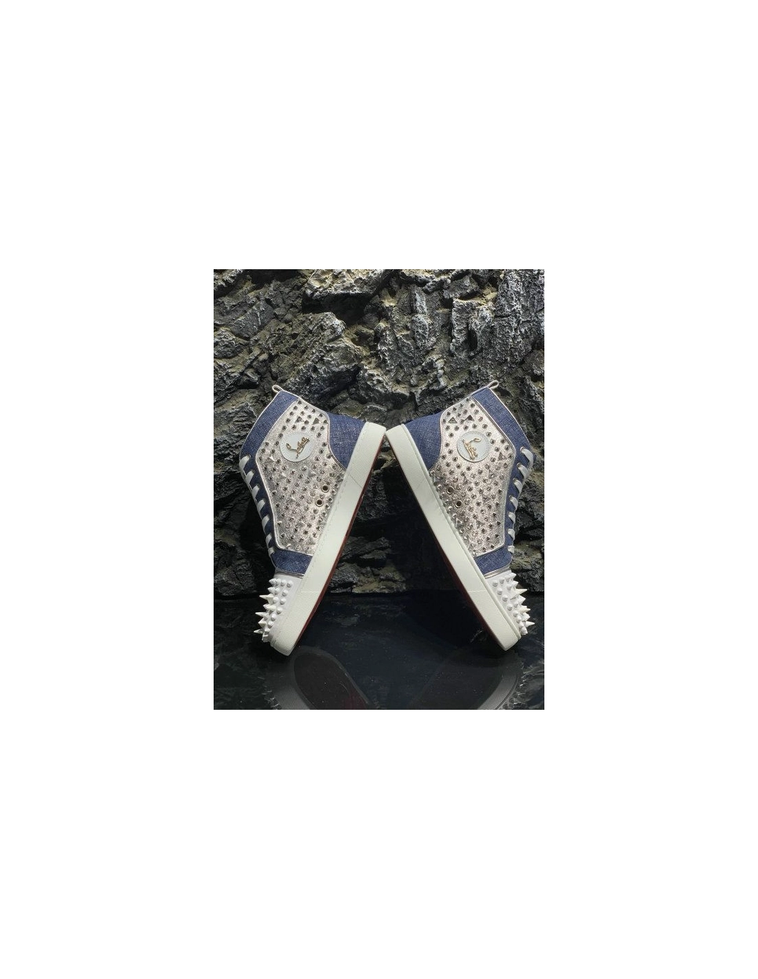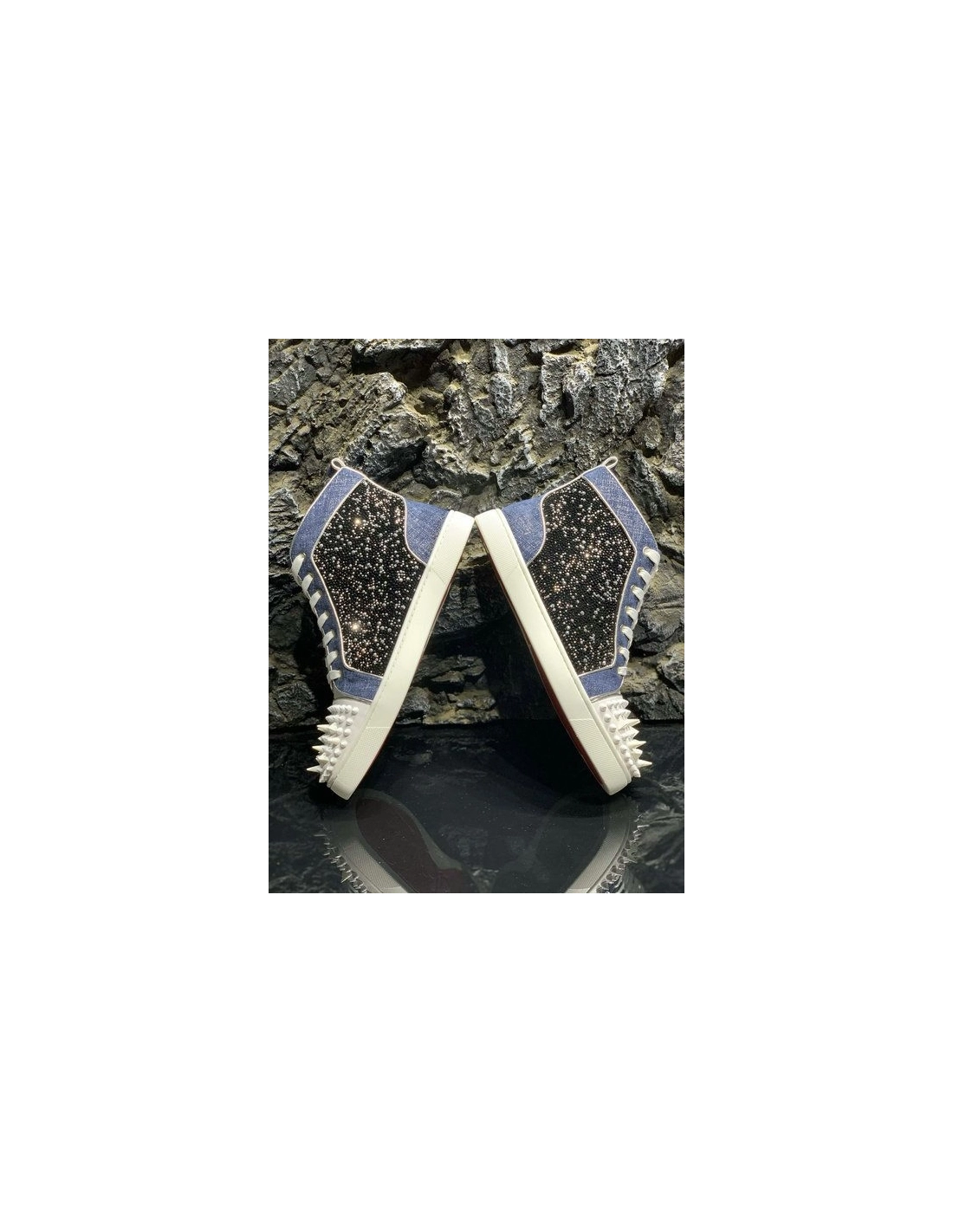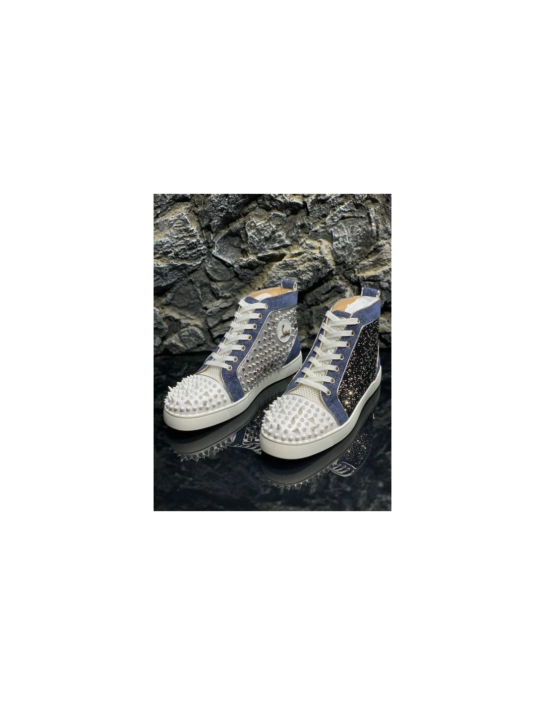 Knockoff Christian Louboutin Lou Pik Pik High-top Sneakers Denim and Strass Blue White