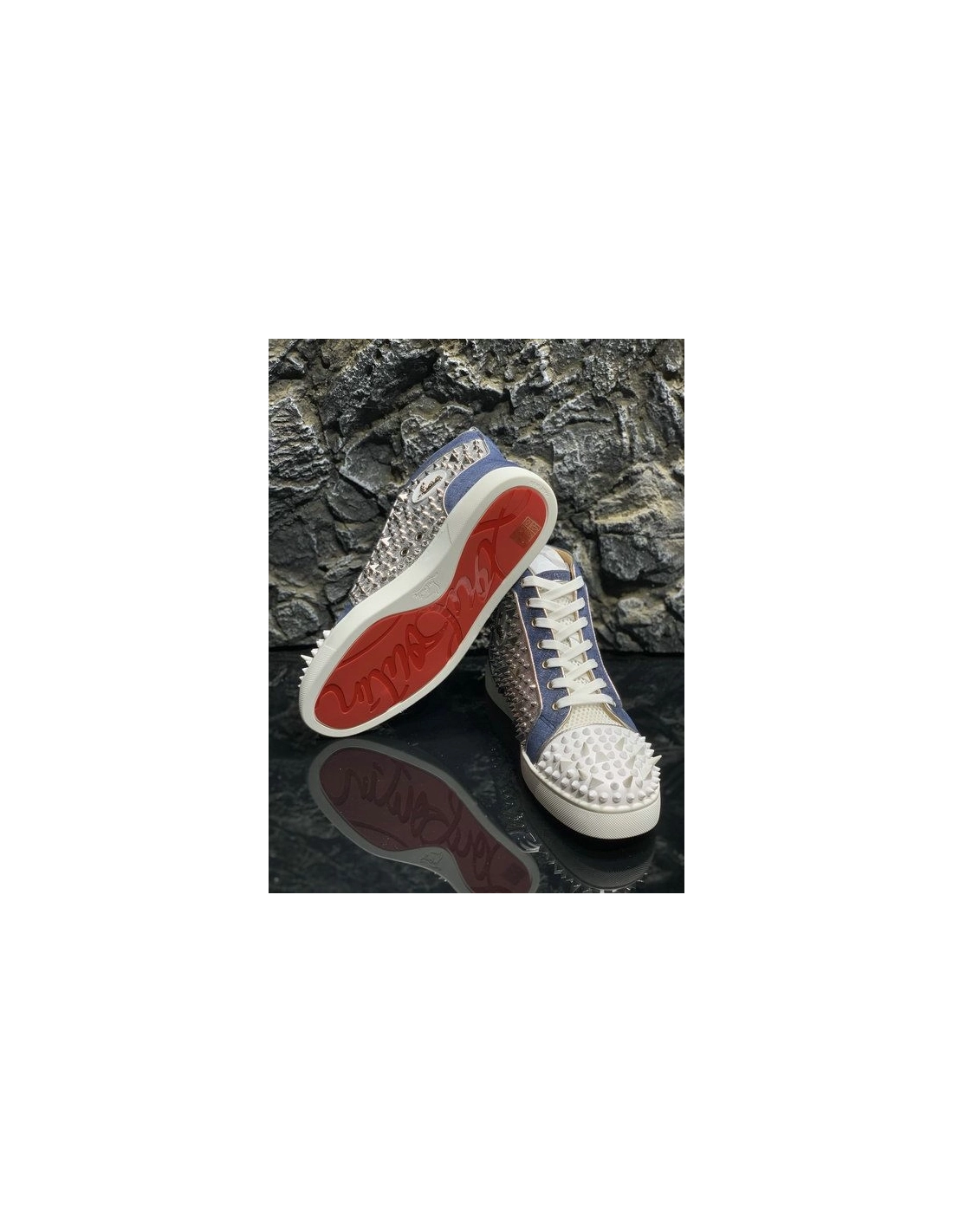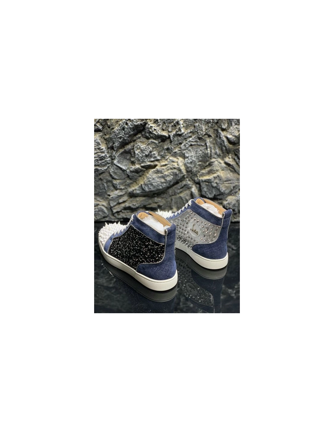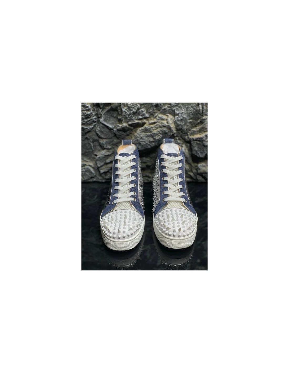 Knockoff Christian Louboutin Lou Pik Pik High-top Sneakers Denim and Strass Blue White
