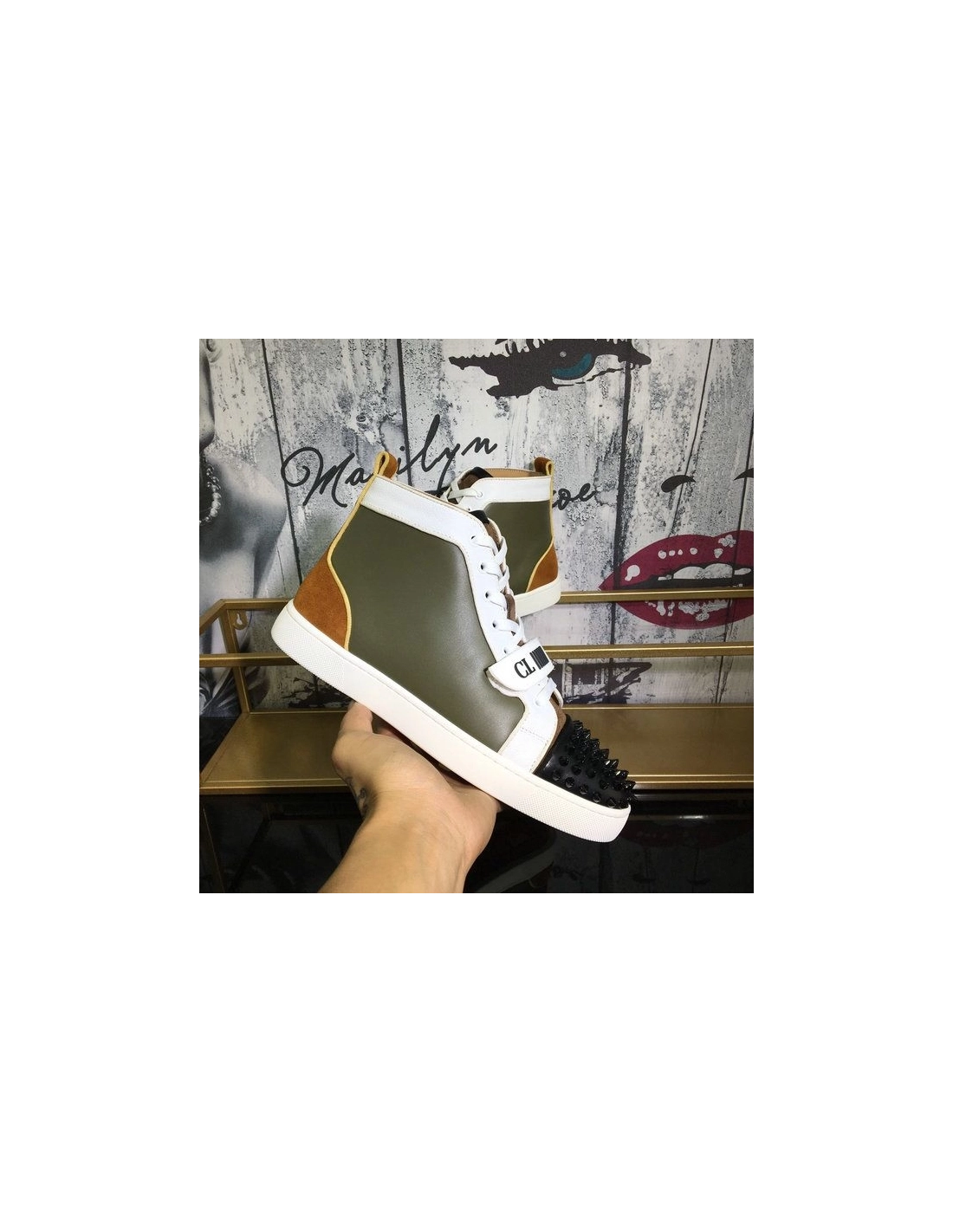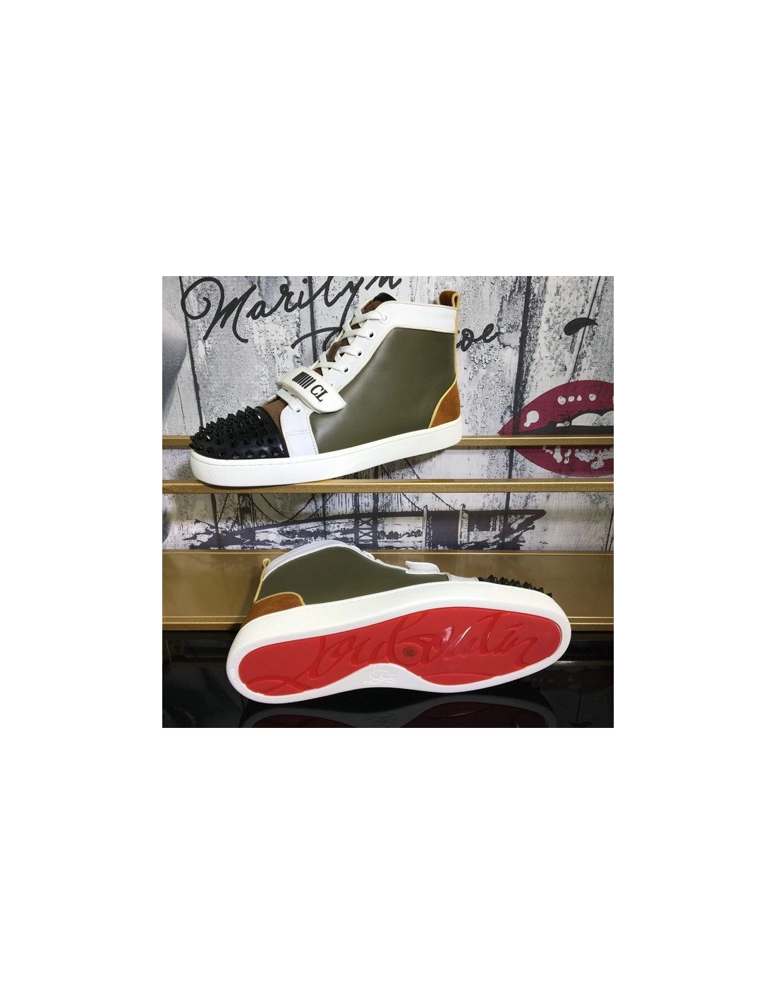 Christian Louboutin Lou Spike High-Top Sneakers Leather Multicolor