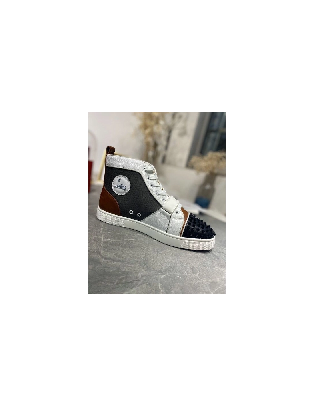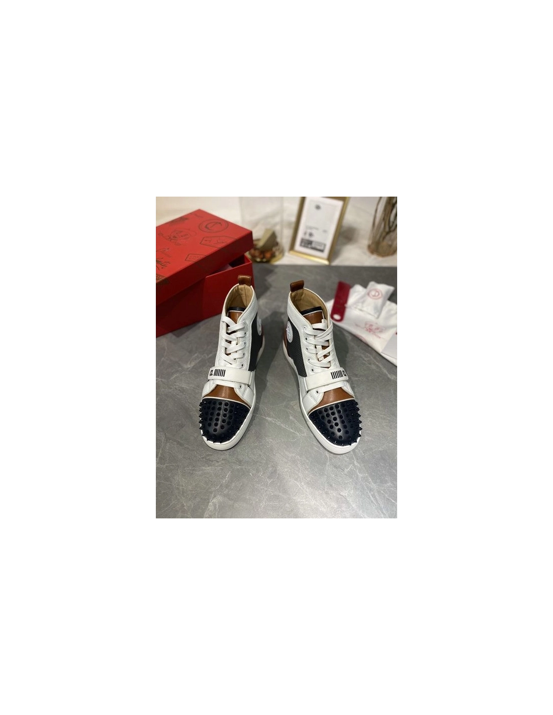 Christian Louboutin Lou Spike High Top Sneakers Calf Leather Multicolor