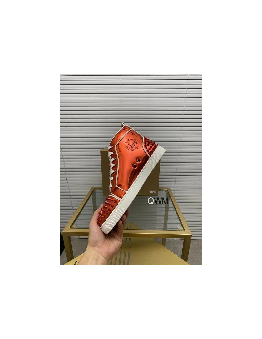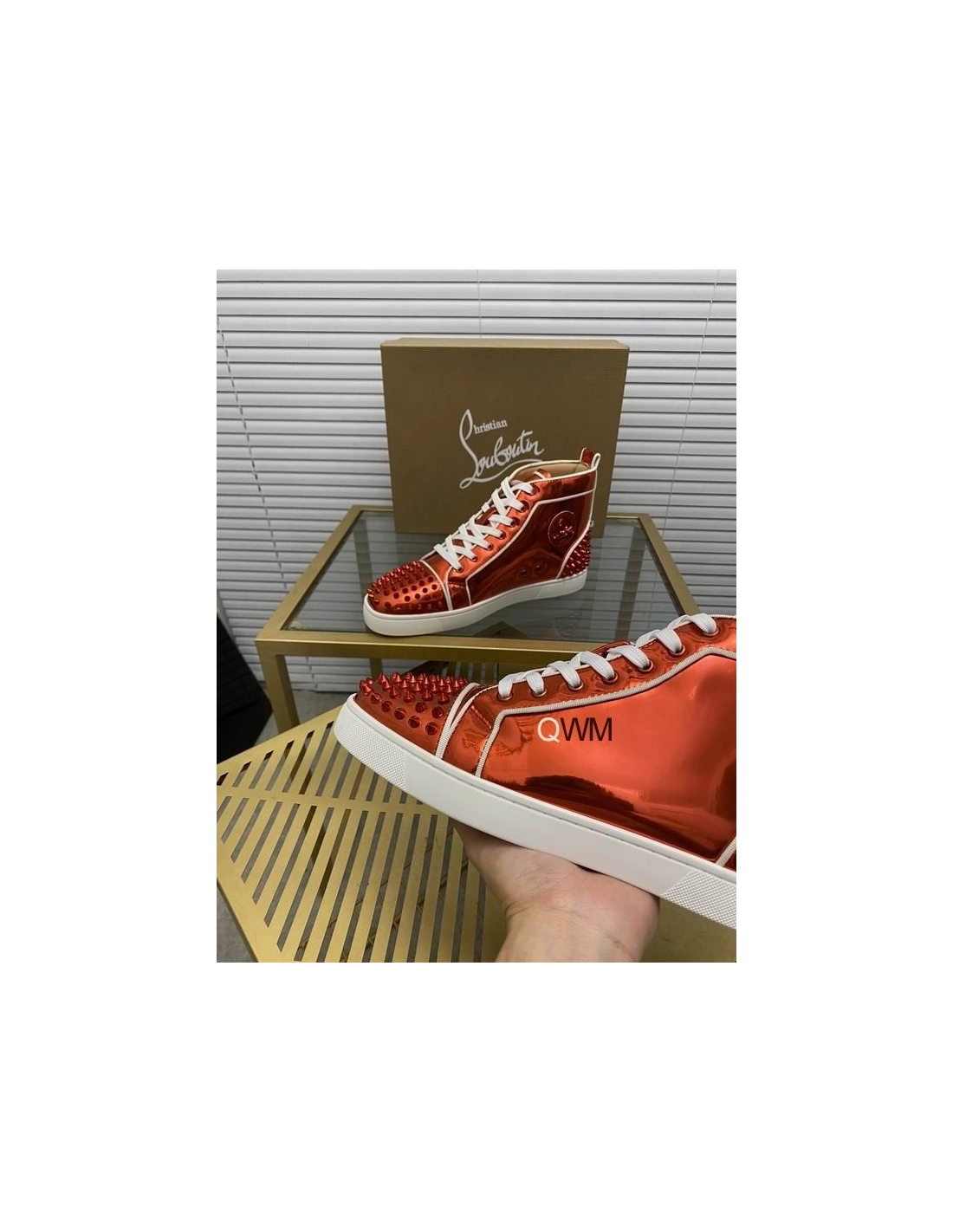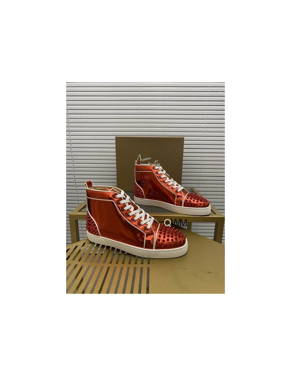 Christian Louboutin Lou Spikes 2 High Top Sneakers Patent Leather Loubi