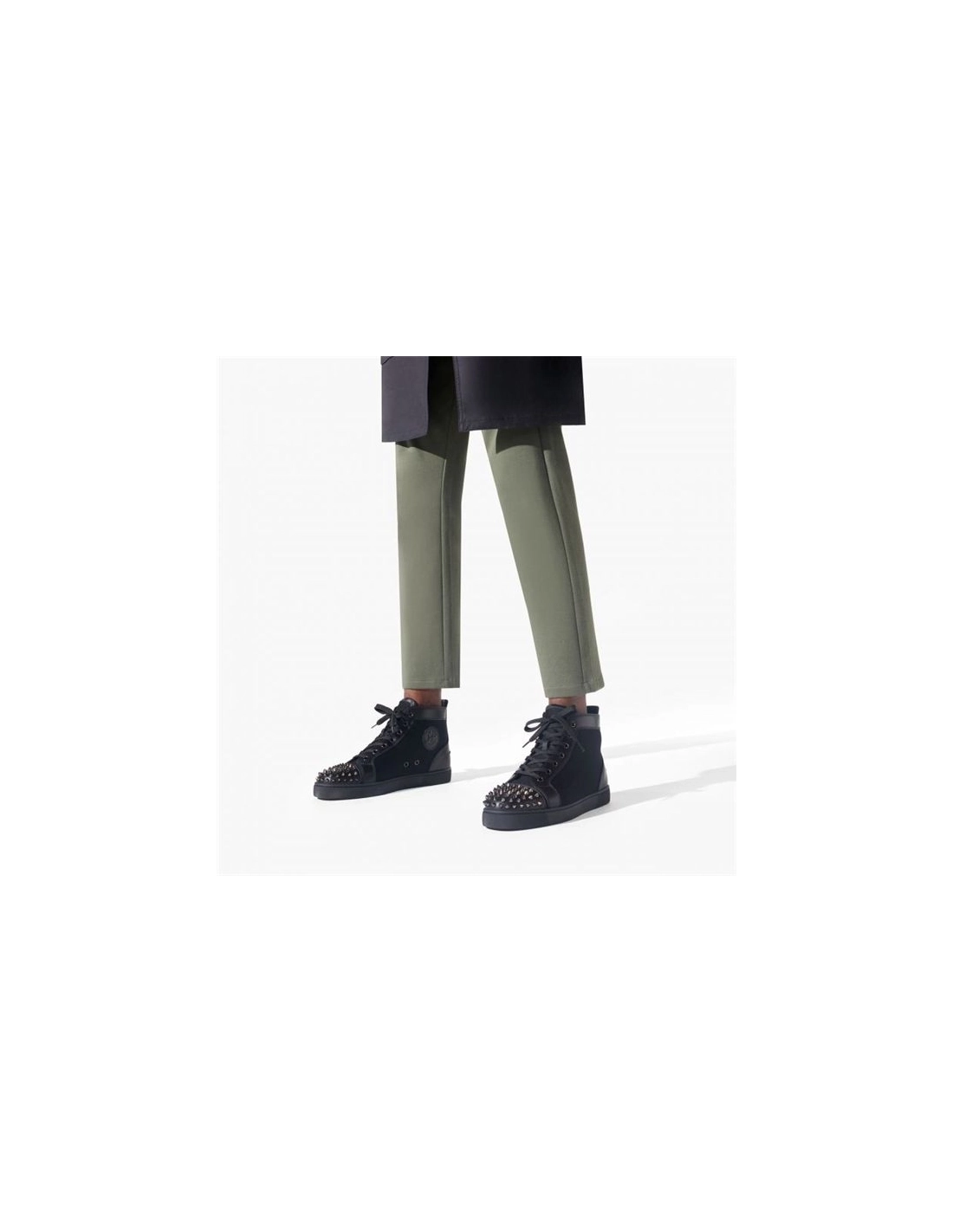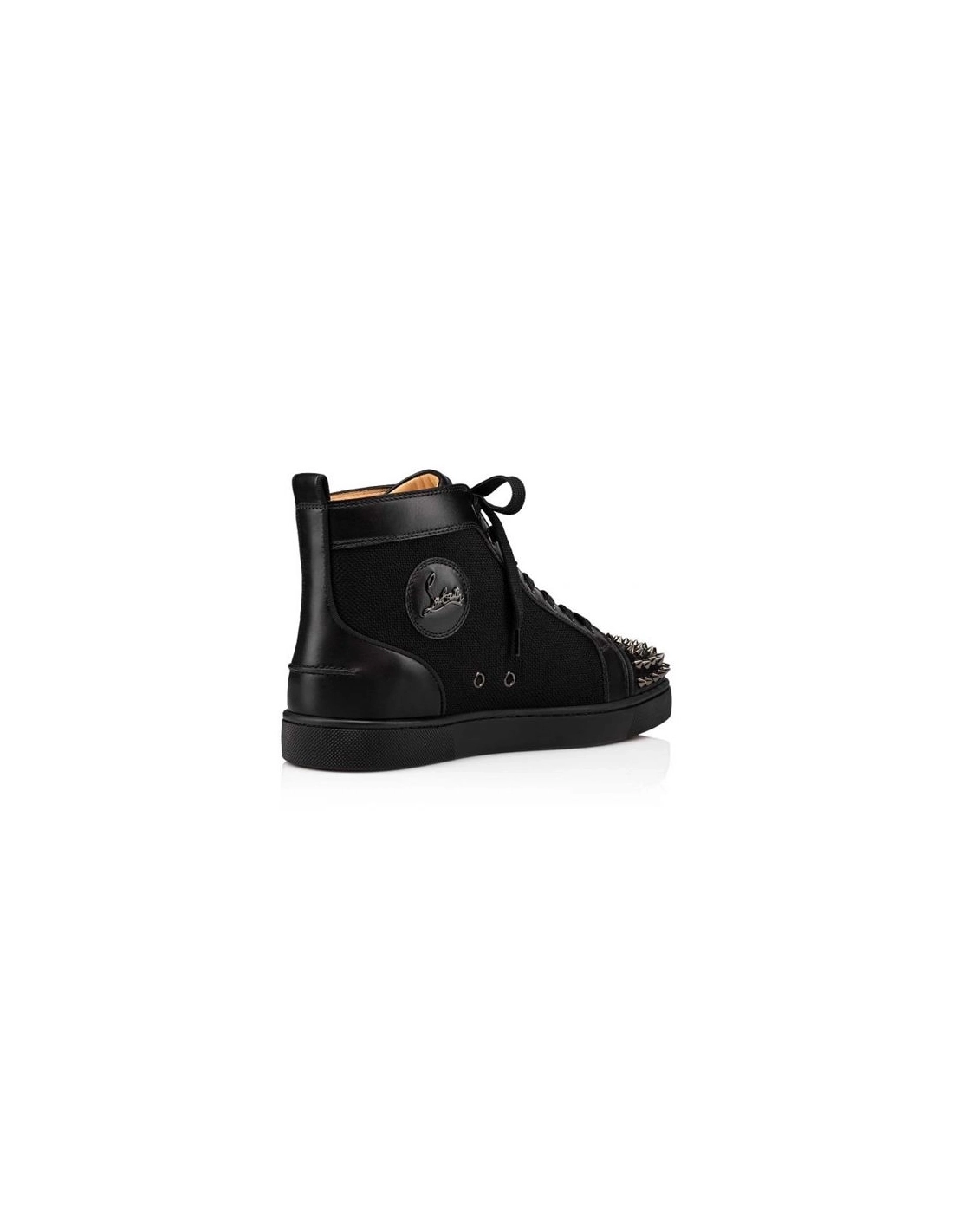 Christian Louboutin High-top Lou Spikes Orlato Flat Black/black Gun Calf