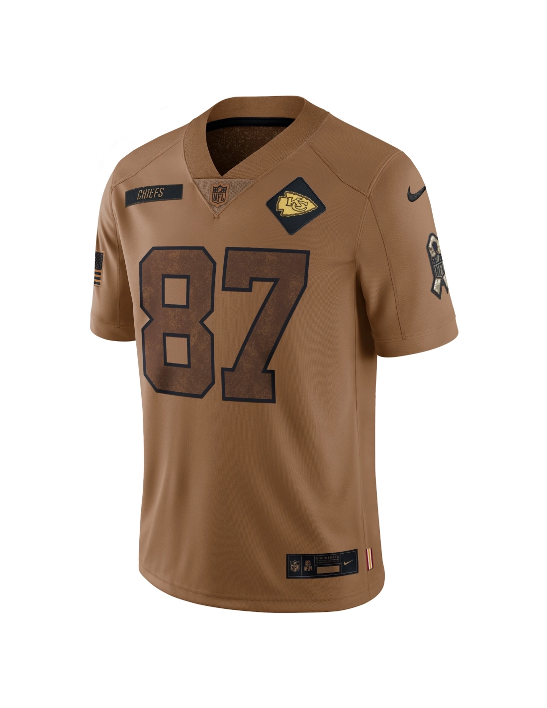Womens Kansas City Chiefs Travis Kelce Brown 2023 Salute To Service Limited Jersey