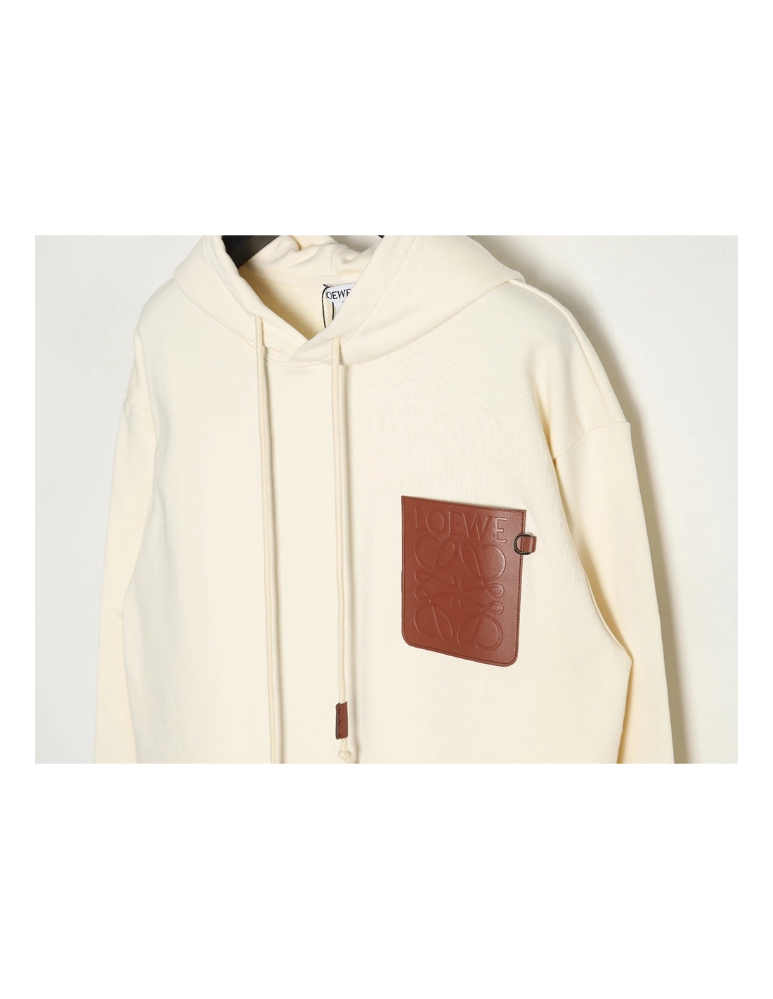 Loewe hooded sweatshirt with embossed logo on chest and leather pockets