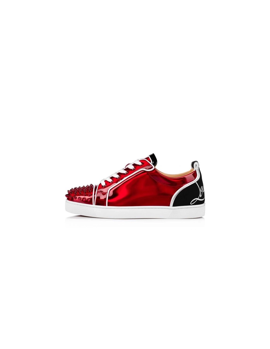 Christian Louboutin Fun Louis Junior Spikes Flat Version Loubi/black Leather