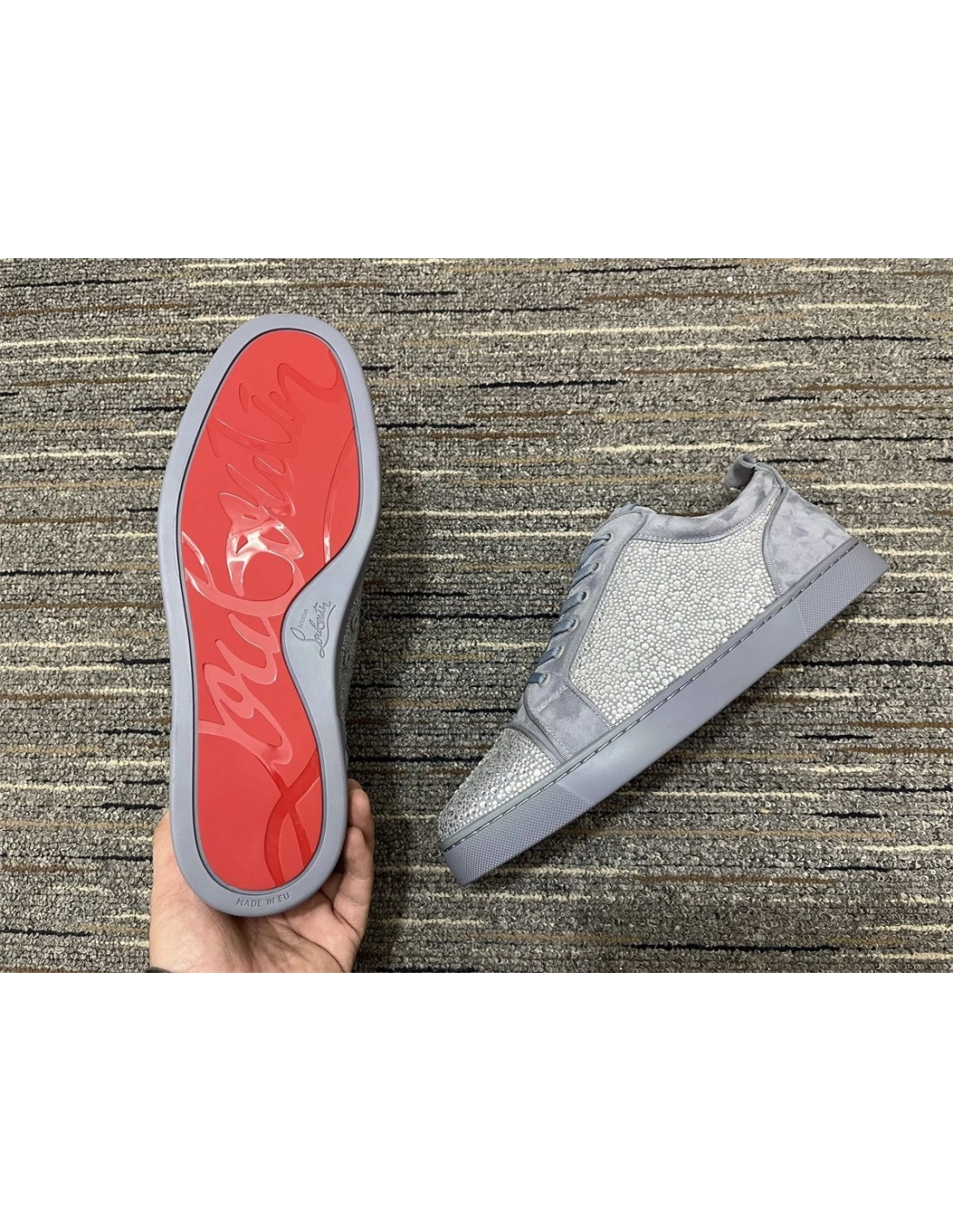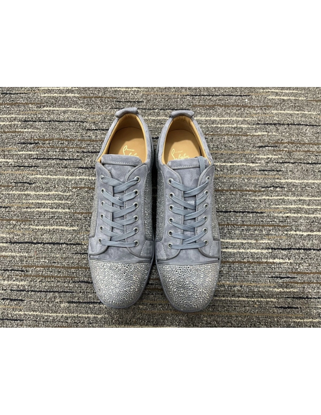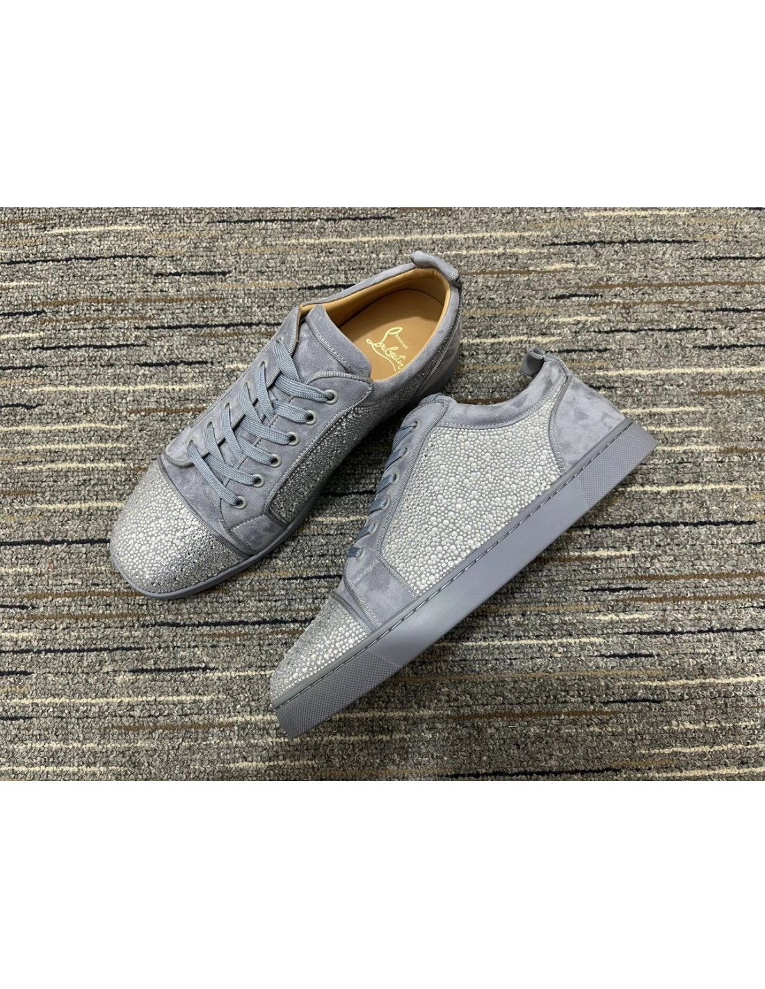 Christian Louboutin Louis Junior Strass Sneakers Suede Leather Gray