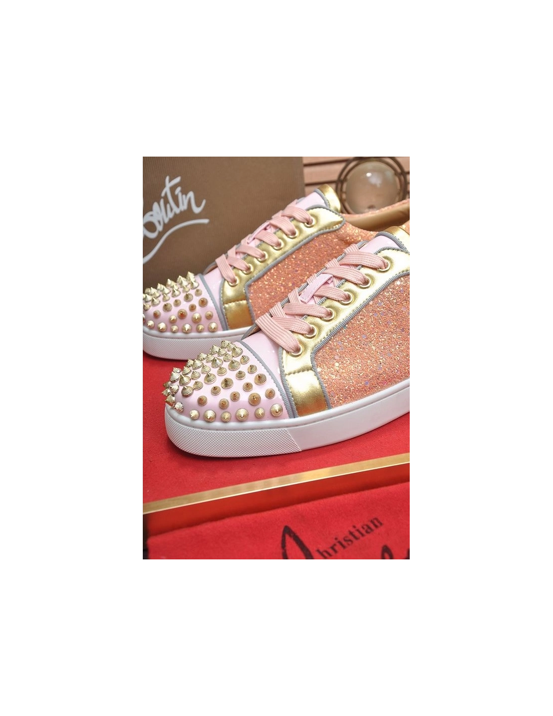 Christian Louboutin Louis Junior Spikes Men Low-top Sneakers Pink