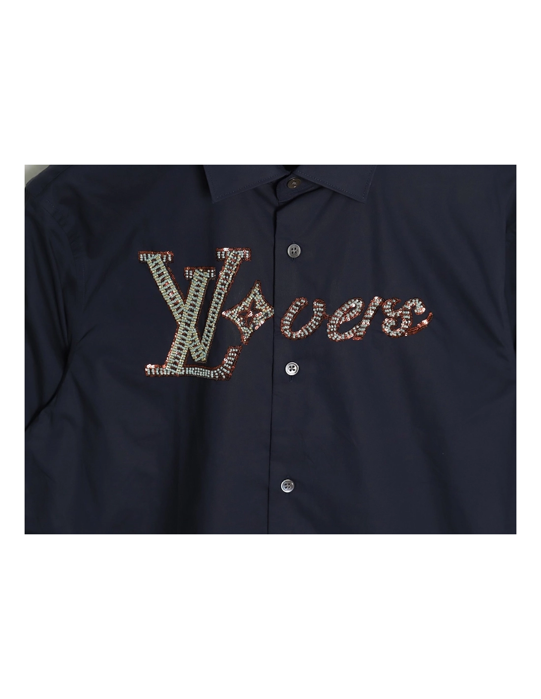 Louis Vuitton rhinestone logo shirt long sleeves