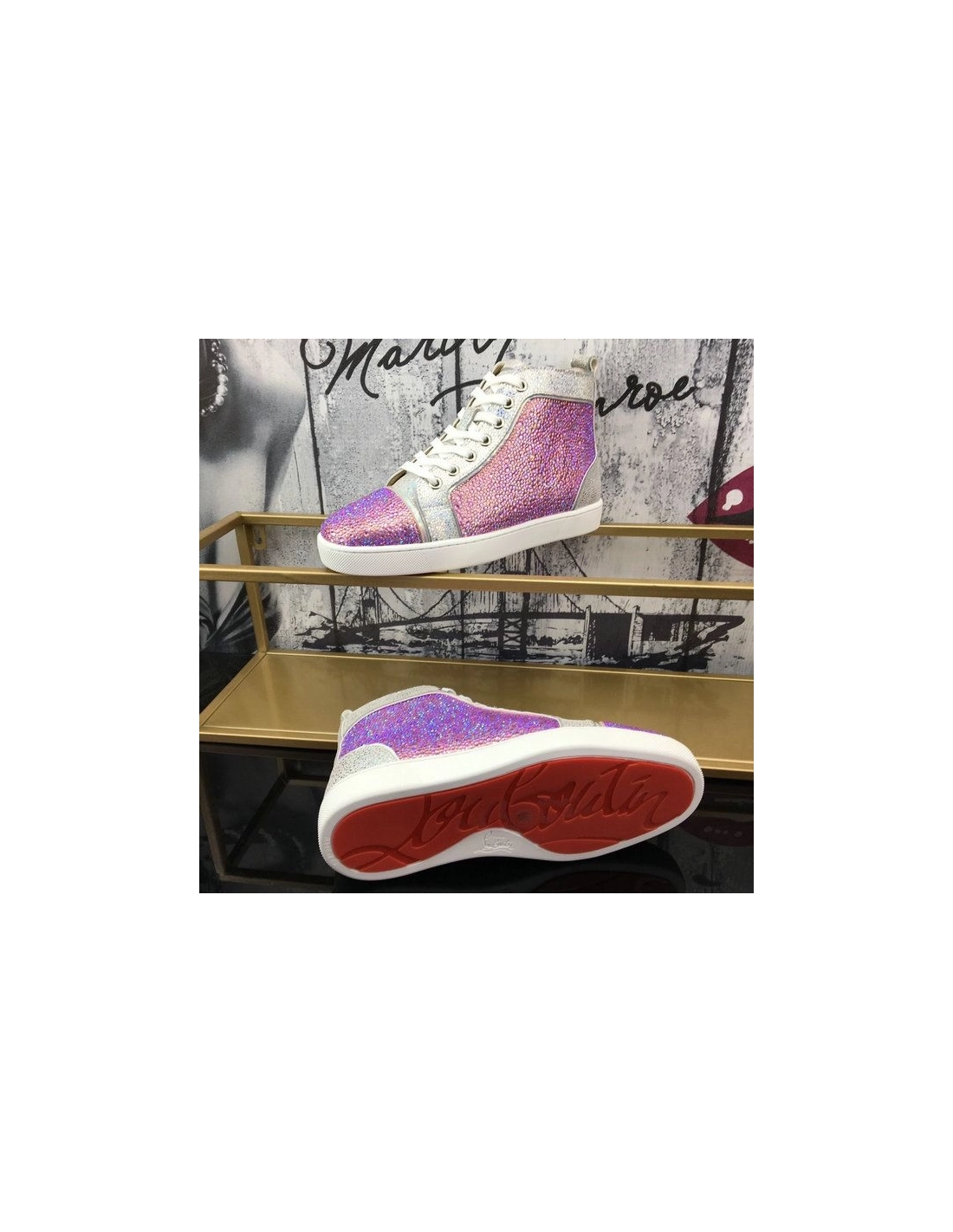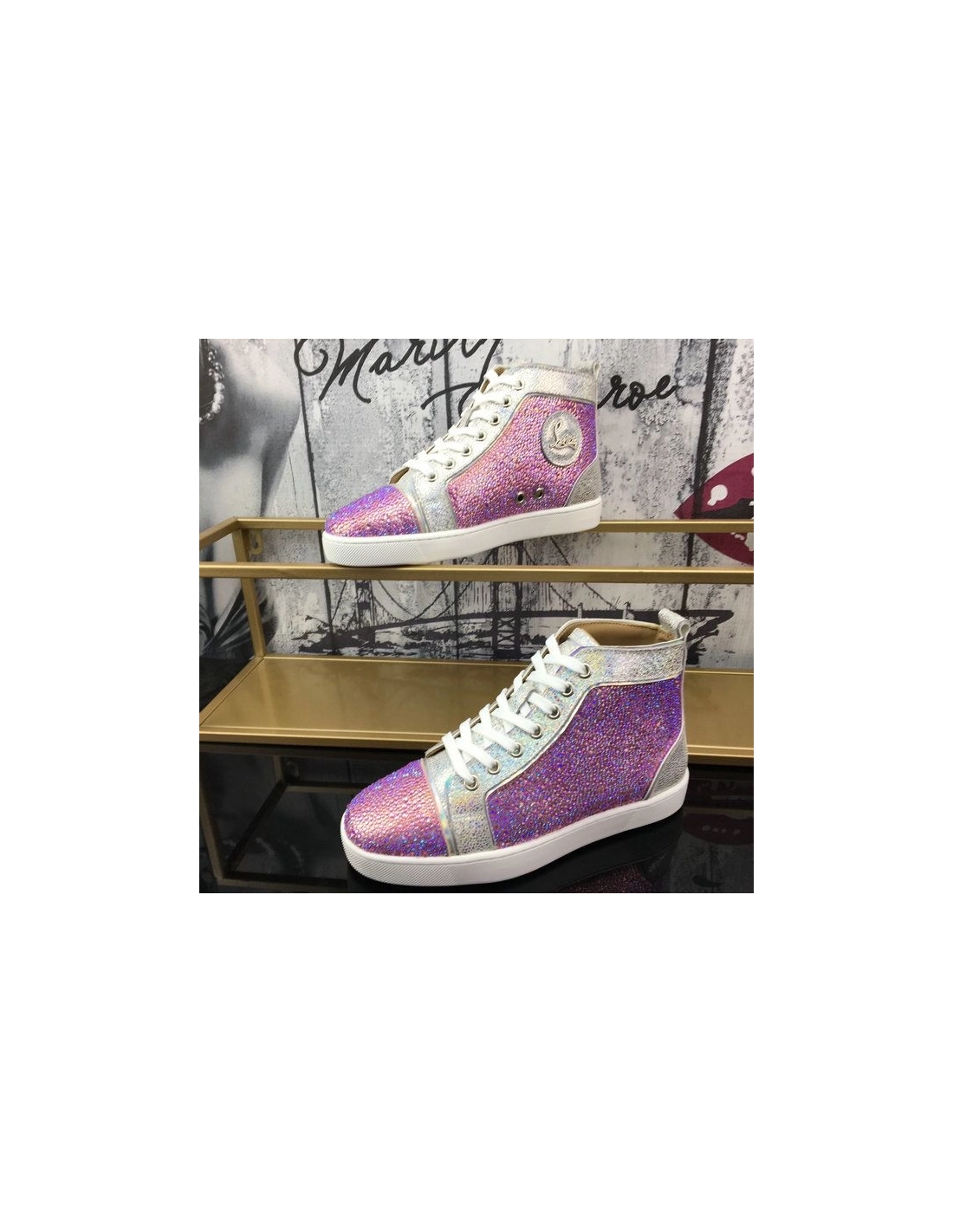 Fake Christian Louboutin Louis Strass Flat High-top Men Sneakers Rhinestone Embellishments Multi
