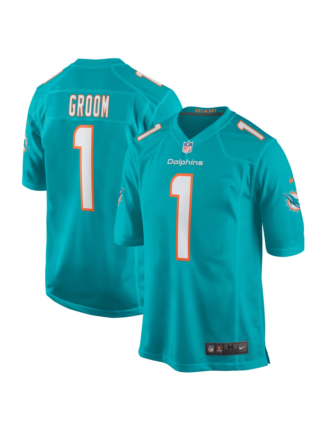 Mens Miami Dolphins Number 1 Groom Aqua Game Jersey