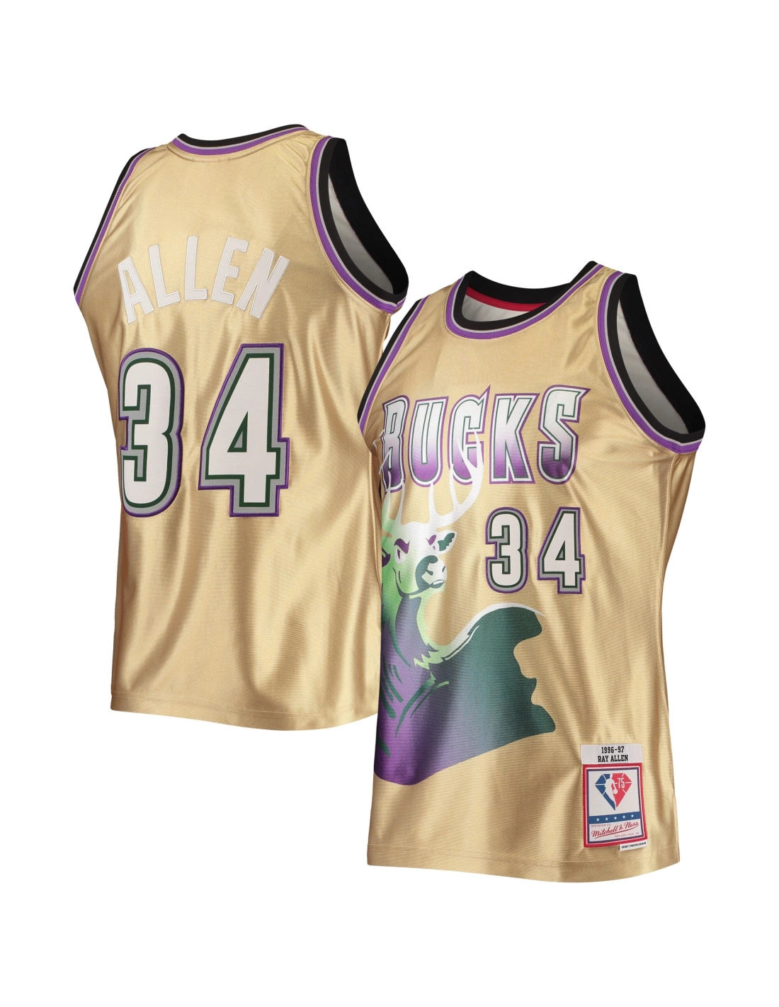 Mens Milwaukee Bucks Ray Allen Gold 75th Anniversary 1996/97 Hardwood Classics Swingman Jersey