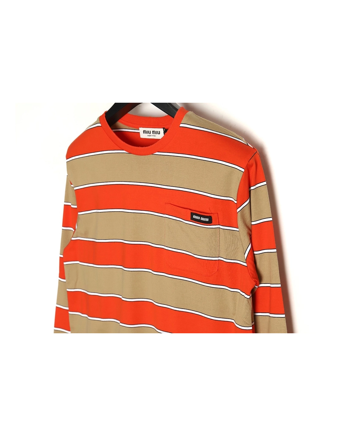 Miu Miu Striped Lapel Polo Long Sleeve TShirt