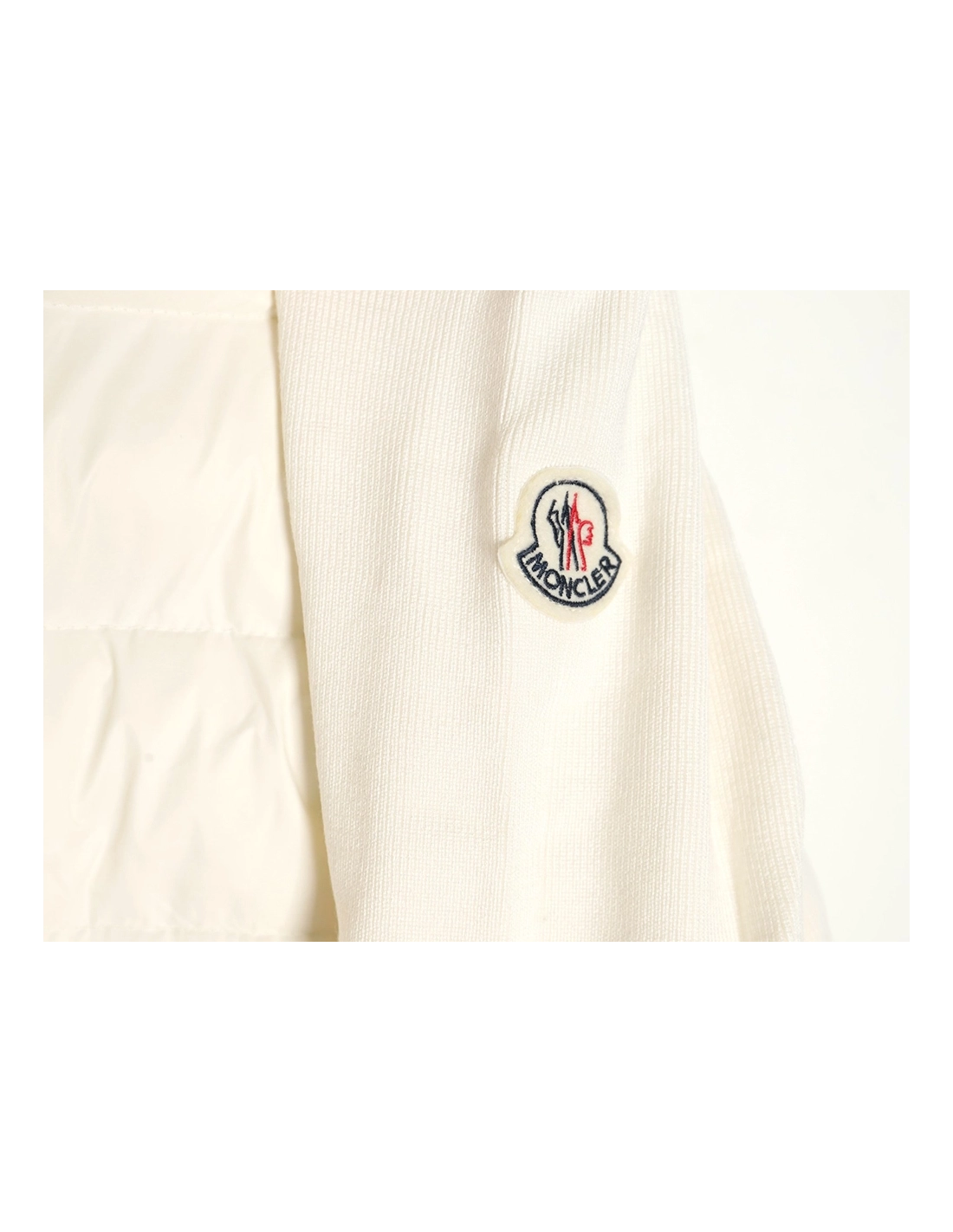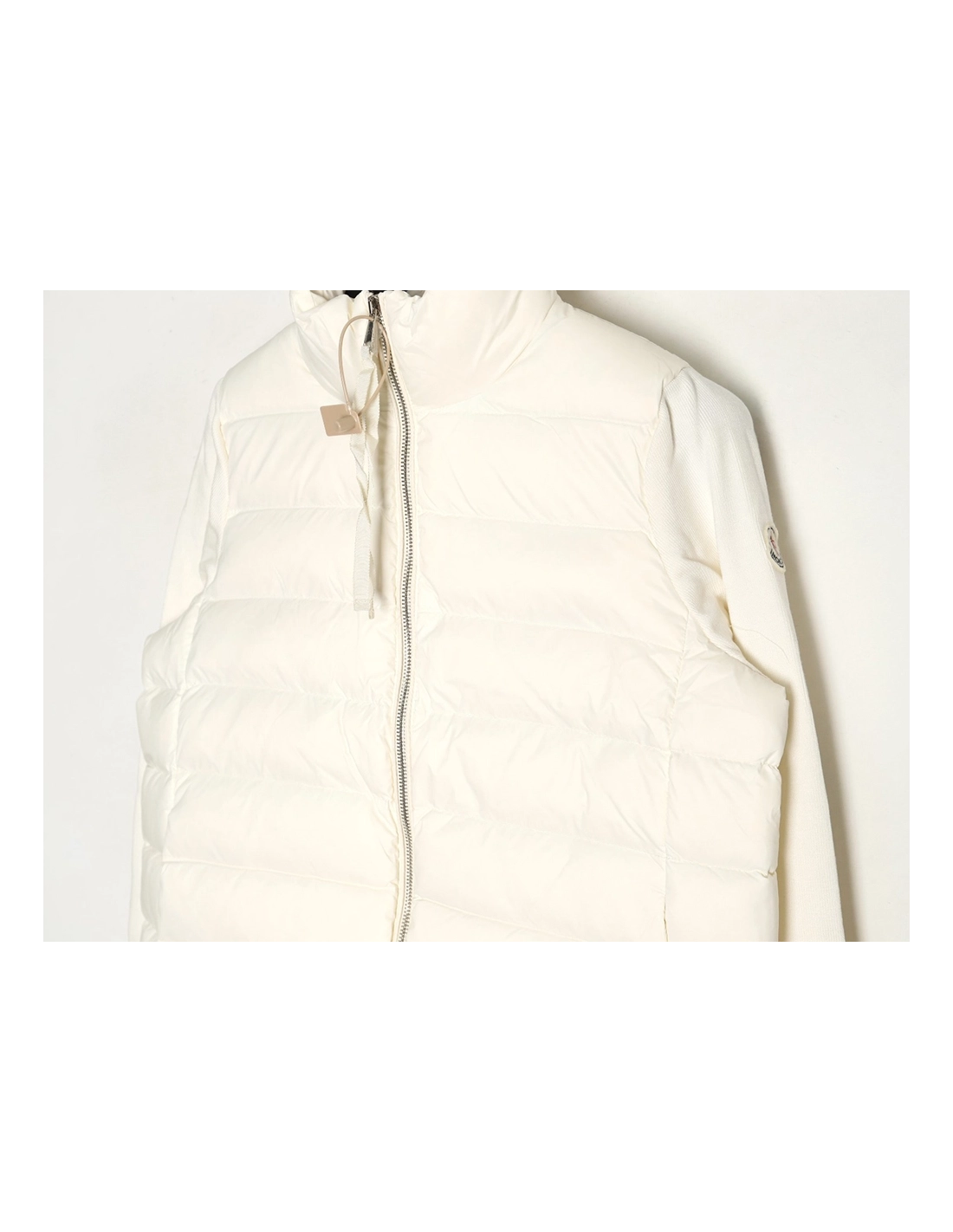 Moncler patchwork knitted stand collar lightweight down jacket
