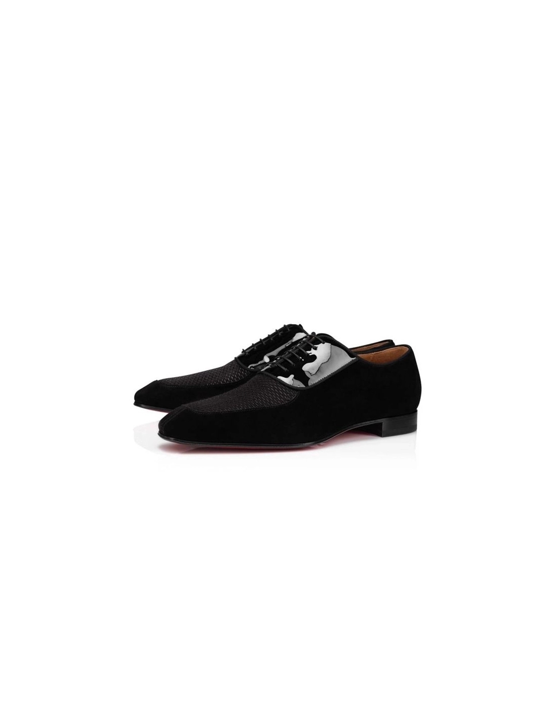 An Oxford shoe with rounded quarters inspired by the low-cut waistcoat of a traditional three-piece suite, the Lafitte is extremely refined with a retro attitude. Crafted on the Greggo last, this model will suit slimmer feet and insteps. This Christian Louboutin Oxford Lafitte Flat Black Calf, in all-over Black, features a stunning blend of Veau Velours, textured Jacquard Evening and Patent Leather, outlined with a tonal Grosgrain ribbon trim.Color : BLACKMaterial : CALFCollection :Fall Winter 21