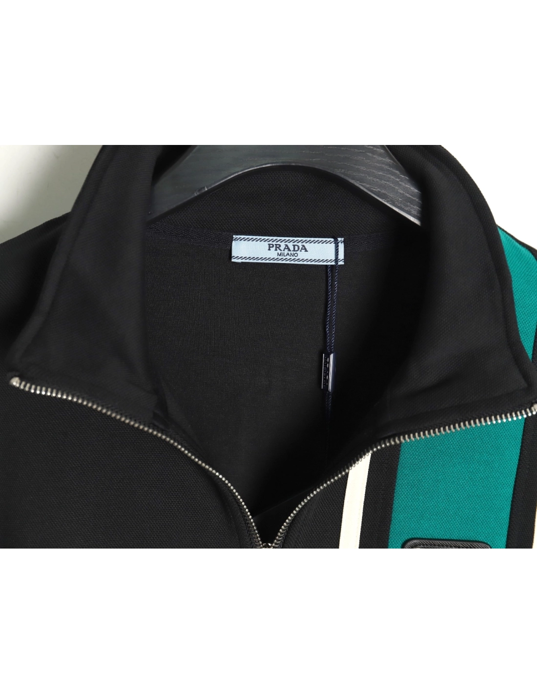 Prada side triangle logo green webbing zipper jacket