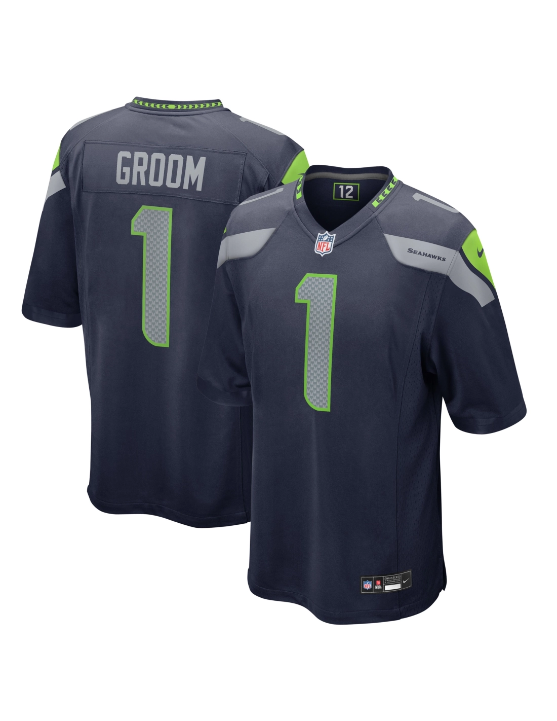 Mens Seattle Seahawks Number 1 Groom College Navy Game Jersey