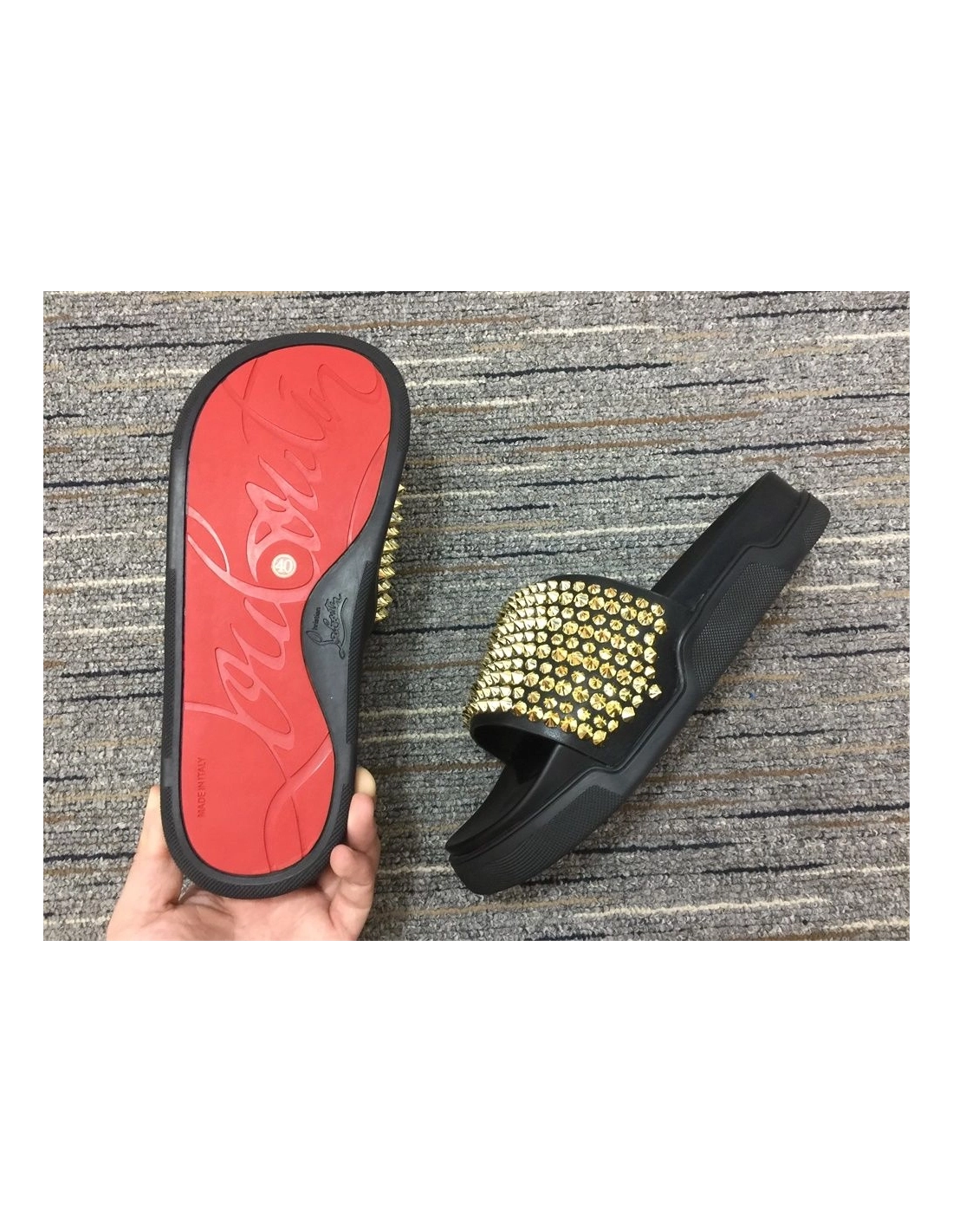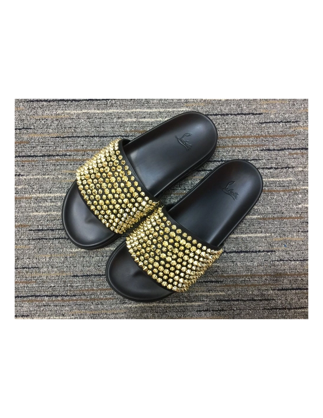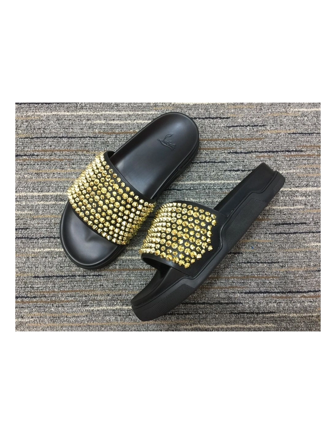 Discount Christian Louboutin Pool Fun Sandals Spikes Leather Black Outlet