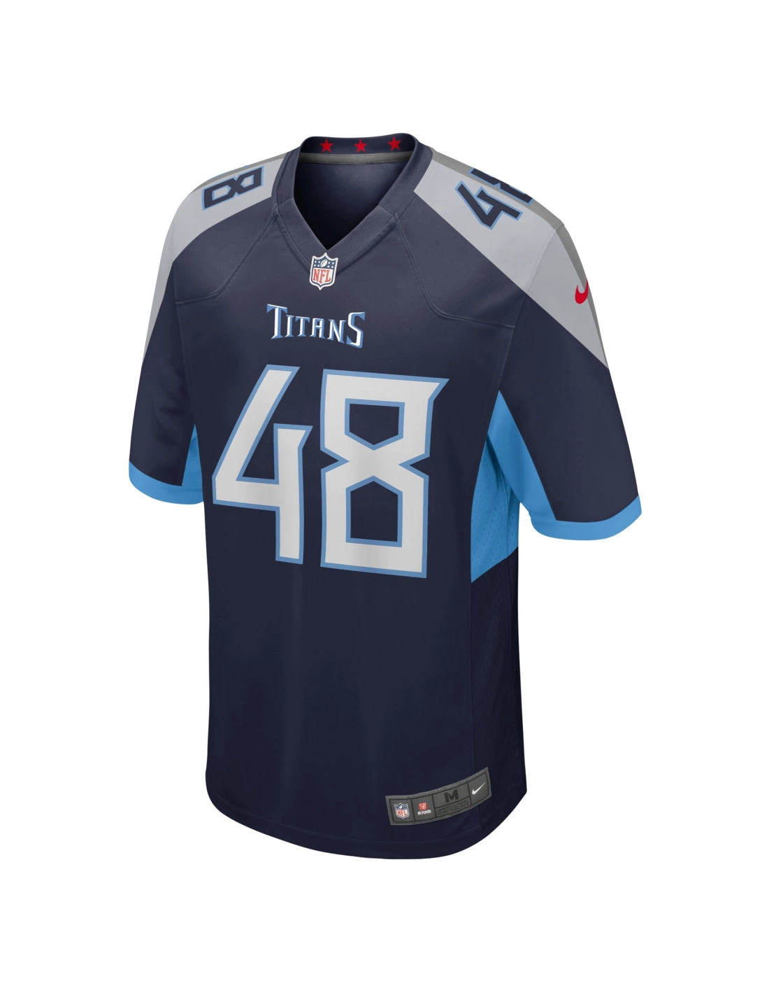 Sewn-on NFL Shield at collar and satin twill woven jock tag at hem
